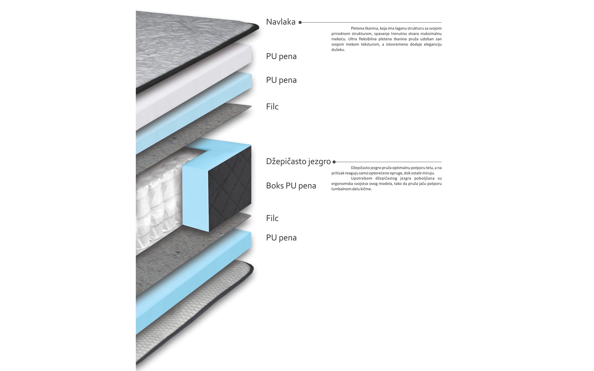 Dušek Comfort Lux dimenzija: 200x90x24, 200x140x24, 200x160x24, 200x180x24.