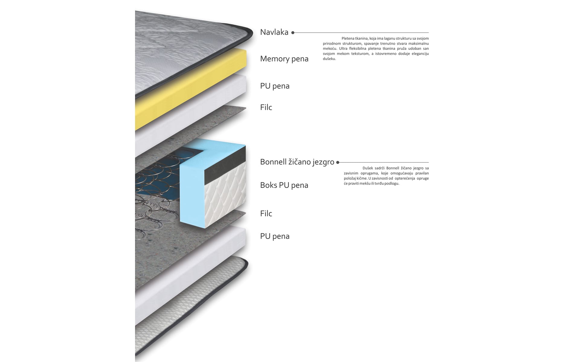 Dimenzije dušeka | 140×200, 160×200, 180×200, 90×200 |