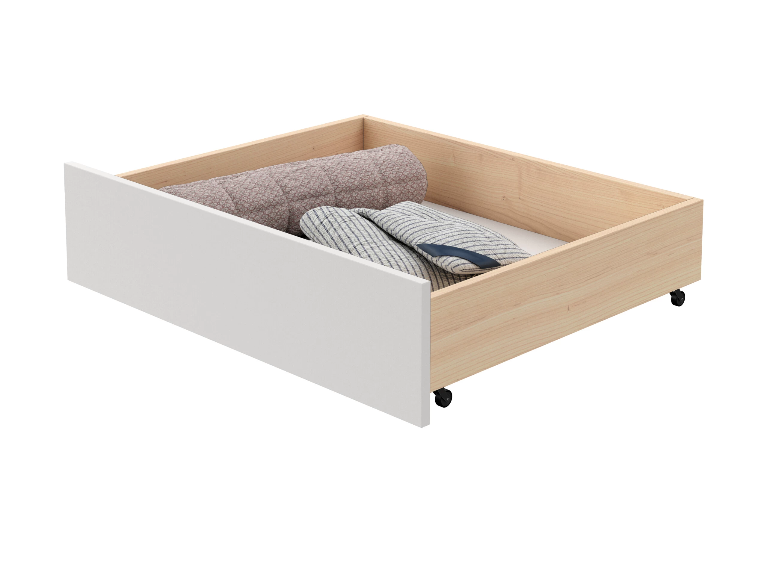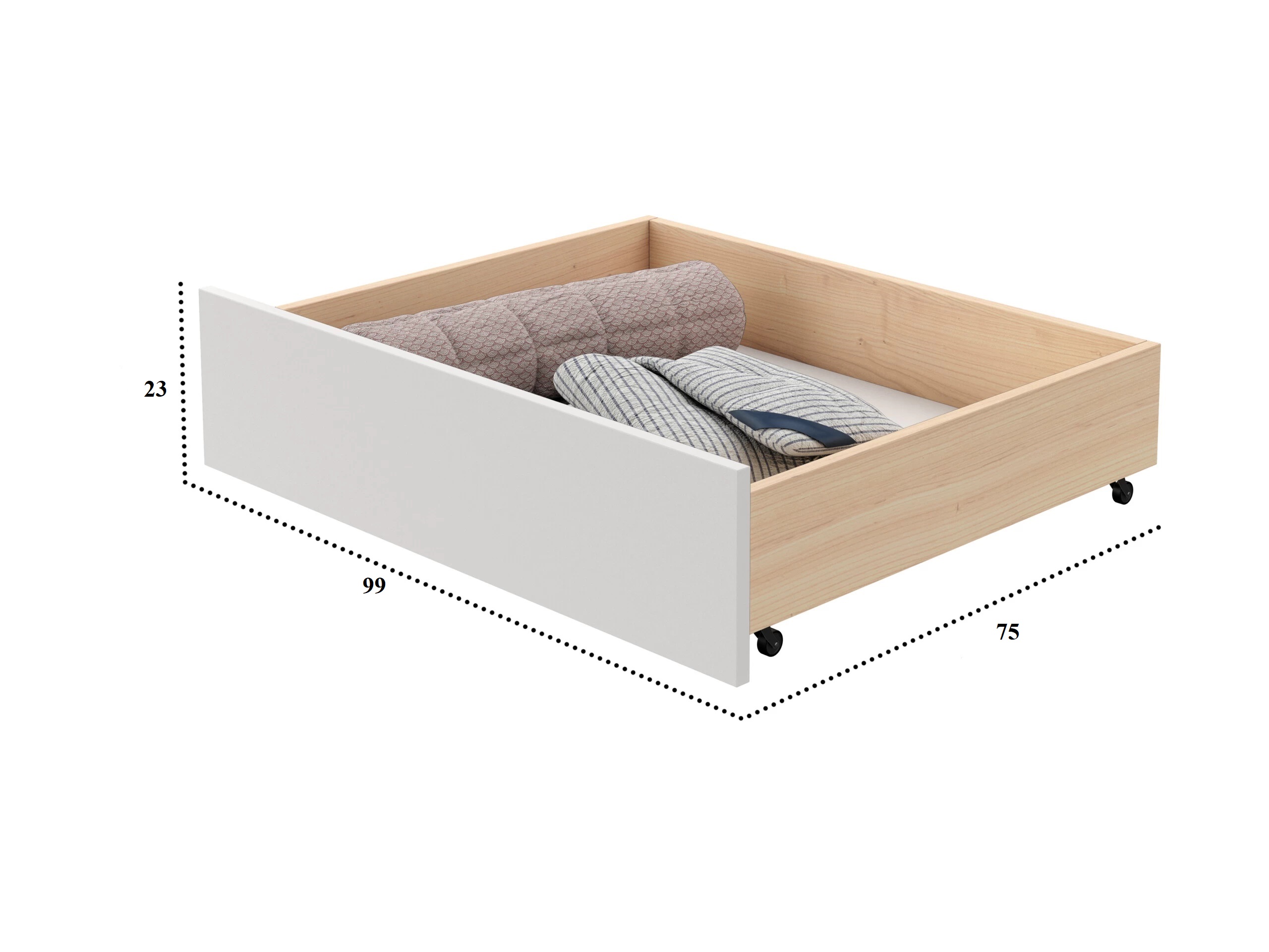 Fioka za posteljinu pruža praktičan način da maksimalno iskoristite prostor ispod kreveta, bez narušavanja urednog izgleda spavaće sobe. Izrađena od kvalitetnog punog drveta ona kombinuje prirodnu toplinu drveta sa modernim belim frontom. Smeštena na točkićima, fioka se lako i tiho izvlači, omogućavajući vam da bez napora odložite posteljinu, ćebad ili odeću van sezone. Savršeno se uklapa uz krevete iz naše ponude, pretvarajući neiskorišćeni prostor u diskretno i elegantno mesto za odlaganje.